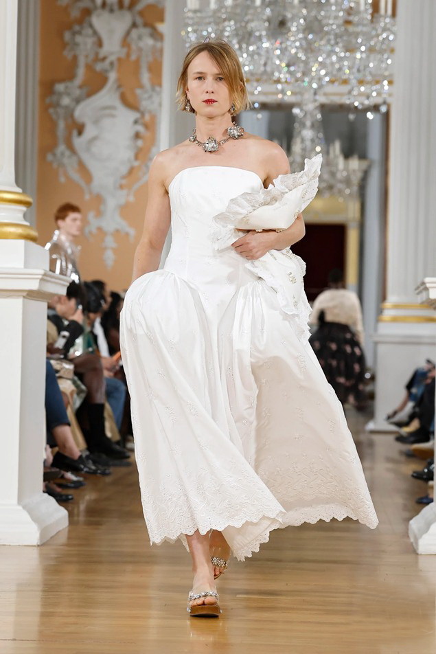 La capitale britannica ha reinventato il bianco in chiave ribelle, trasformandolo in un manifesto di audacia. Designer visionari hanno osato con tulle impalpabile, pizzi intricati e organze leggere, creando volumi esagerati e trasparenze sospese come nuvole. Tra dettagli di ispirazione retrò e tocchi metallici futuristi, emergono silhouette che richiamano l’abito da sposa tradizionale, ma contaminate da chiodi, borchie e accenti punk che sussurrano ribellione. Questi abiti sono un dialogo tra passato e futuro, tra romanticismo e audacia, pensati per chi desidera osare senza perdere un briciolo di poesia.