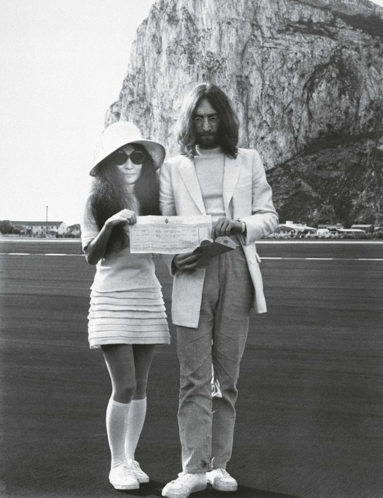 A chiudere il decennio arrivano le nozze più anticonvenzionali : nel 1969, quello tra John Lennon e Yoko Ono , in miniabito bianco, calzini al ginocchio e cappello a tesa larga. Nessun velo , nessuna formalità, solo il linguaggio della libertà. La loro immagine sorridente e disarmante diventa una delle più iconiche del secolo.