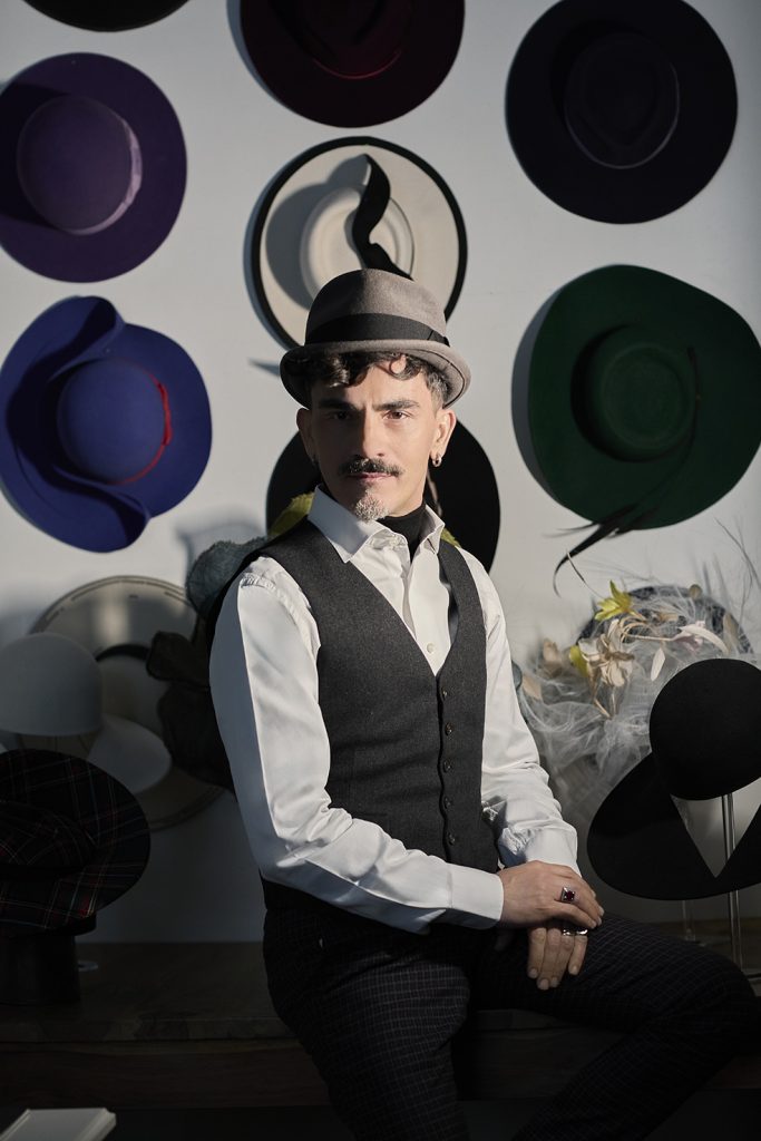 Nel suo atelier, la tradizione dell’arte cappellaia incontra una visione contemporanea, libera da etichette e stagionalità forzate. Bonfilio non si definisce designer, né creatore: si considera semplicemente qualcuno che dà forma alle storie che le persone non sanno ancora di avere.